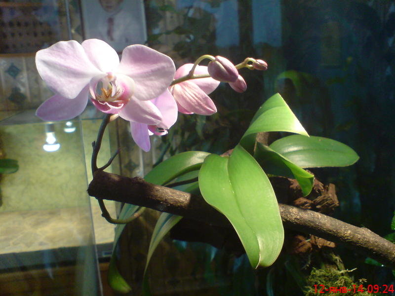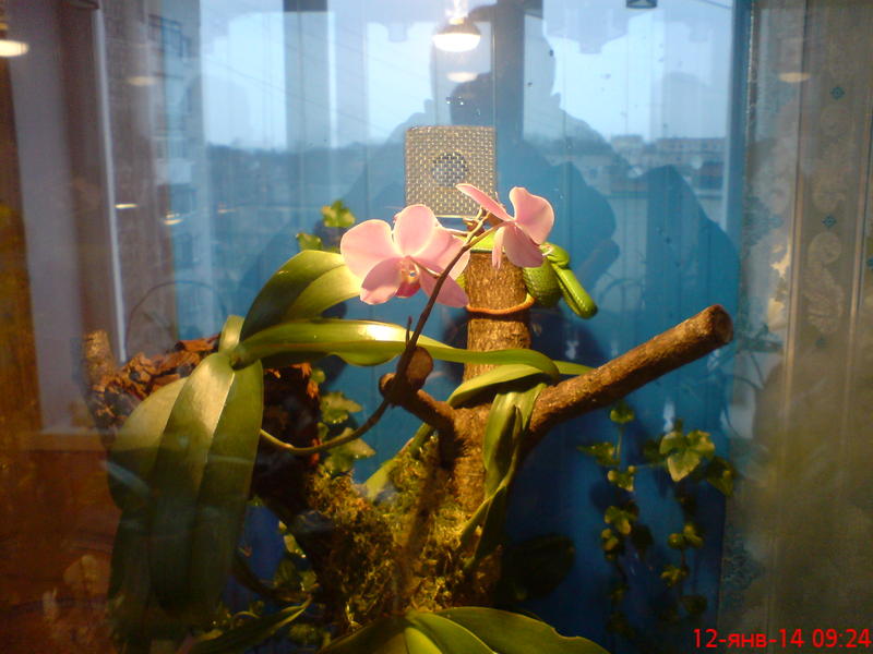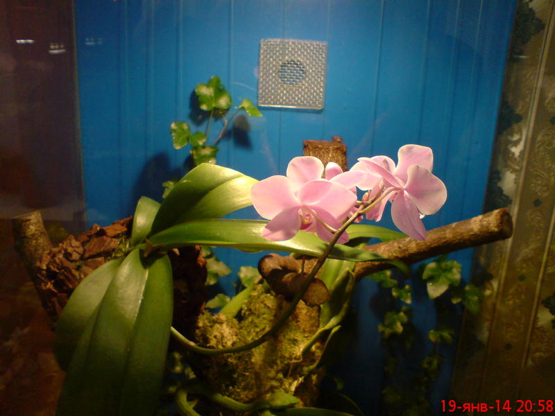 фотки конечно не ахти недостаточно света но позже когда расцветет еще одна орхидея возьму подсветку для видеокамеры и сделяю лучше. плющ заплел практически всю заднюю стенку
