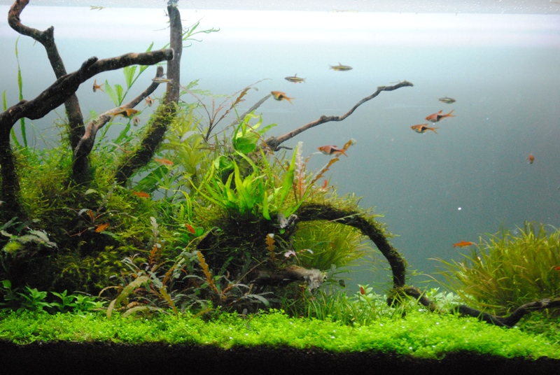 Один из аквариумов оформлен в стиле акваскейп. Планируется запуск еще одного.