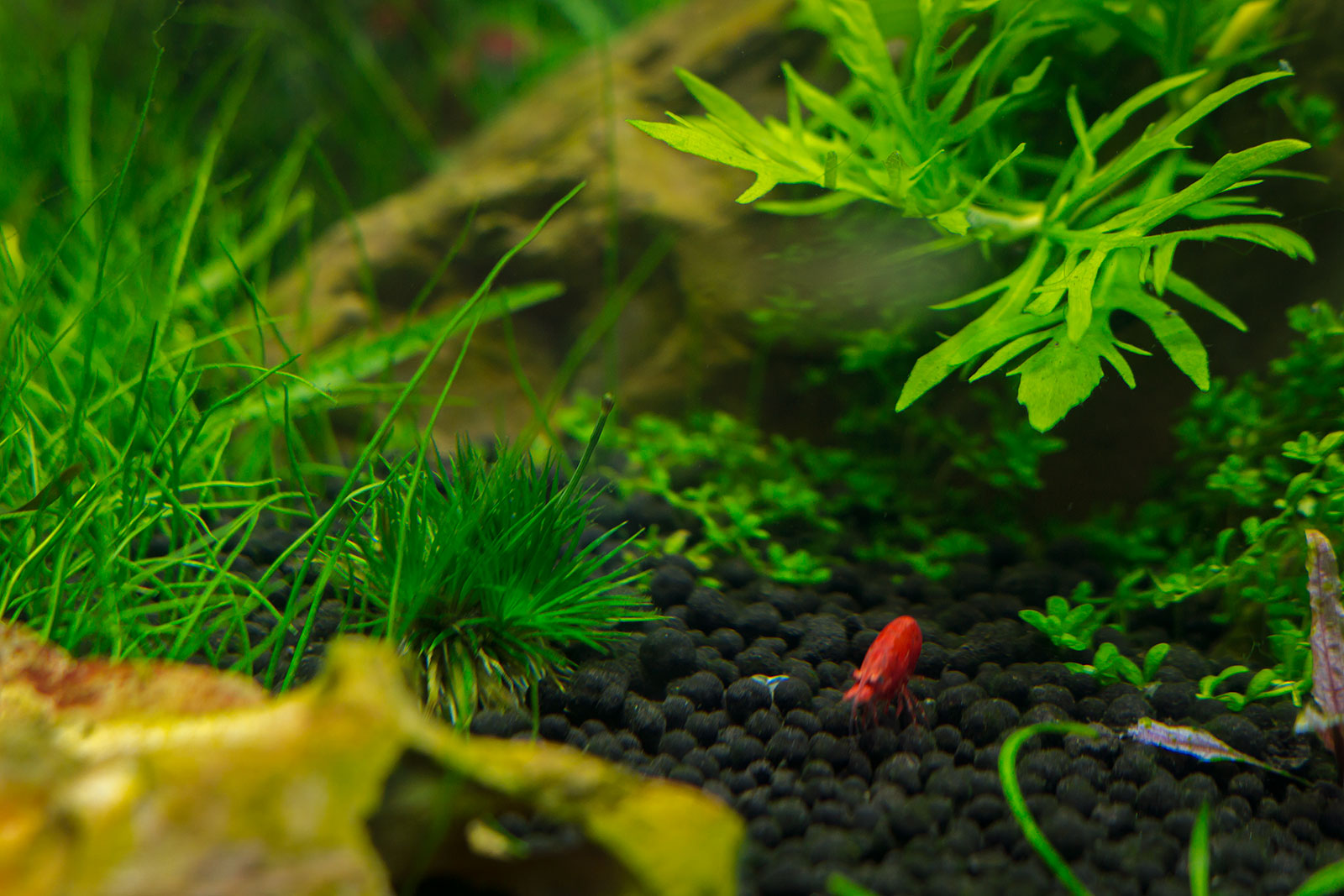 Чтобы не поднимать излишнюю муть при посадке растений, стоит смочить грунт. Для этого заливаем аккуратно, тонкой струйкой, по камушку или другой декорации, воду, до тех пор, пока вода не начнет образовывать лужицу в самой нижней точке поверхности грунта.