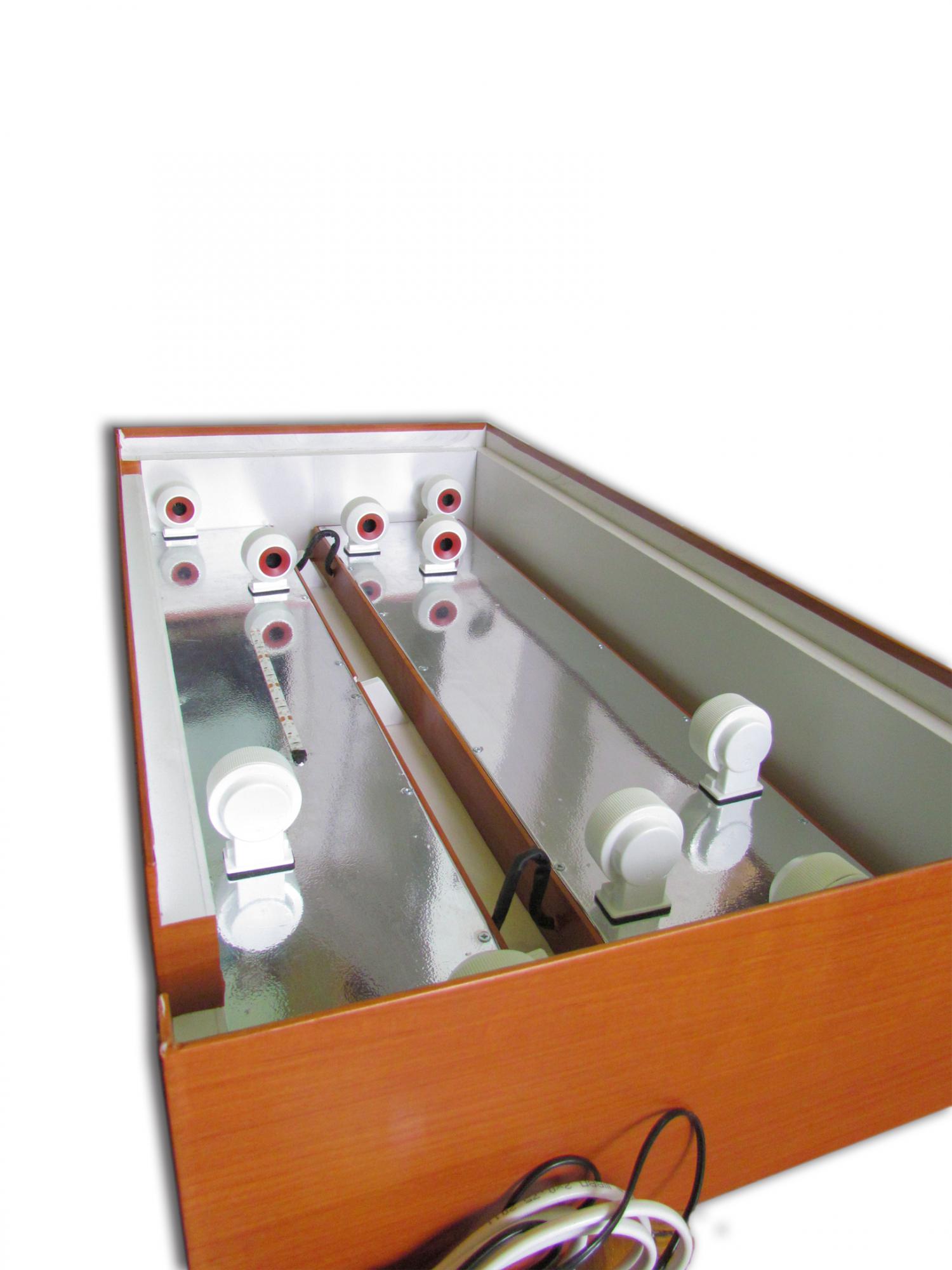 К каждой идет отражатель из структурированного, анодированного алюминия типа IgLa - M-образная парабола. Выключатели на 2+2. Верх откидной/ломающийся на 2+2. Охлаждение 3 куллера с регулировкой оборотов. Очень интересна ночная подсветка на синих светодиодных балках (особенно сразу после выключения, когда растючка еще пузыряет, а теперь пузыряет!!!  ). Овал сложная конструктивно система. Небольшой фотоотчет: https://picasaweb.google.com/1063269...at=directlink#