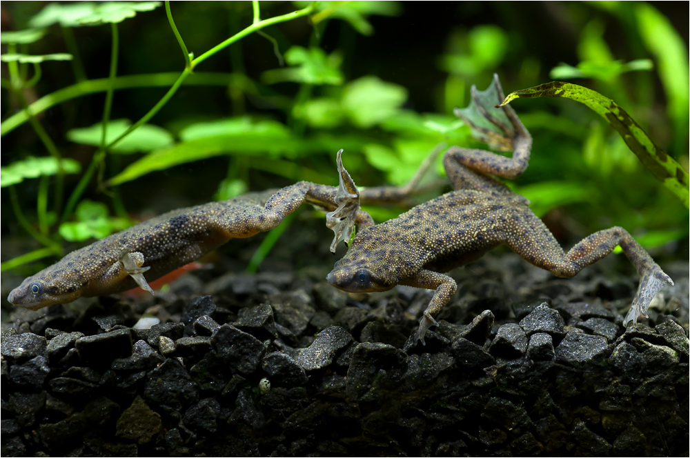 Аквариум специально не оформляла. Это был креветочник, то есть креветки там так и остаются и фильтр тоже остается, но течение очень слабое. По моим ощущениям - геминохирусам больше подойдет аквариум более низкий, но с большей площадью дна. На малышей креветок лягушки охотятся, сейчас не видно ни одного, может попрятались, а может всех съели. Креветок покрупнее не трогают, конечно. Про старую воду тоже читала - планирую уменьшить частоту подмен и количество сменяемой воды. Аквариум накрыт так, чтобы лягушки не убежали, но отверстия для поступления воздуха есть. Едят трубочник, живой циклоп. Не совсем поняла, ели ли замороженный циклоп, таблетки для сомов не хотят кушать. Андрей не рекомендует их кормить коретрой. А еще говорят, что самцы поют  . Очень нравятся