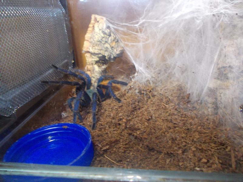 Примечание: Хроматопельма - "сухой" вид паука ,чрезмерное увлажнение может его убить . Плетёт очень много. Лучше держать без увлажнения грунта с поилкой.