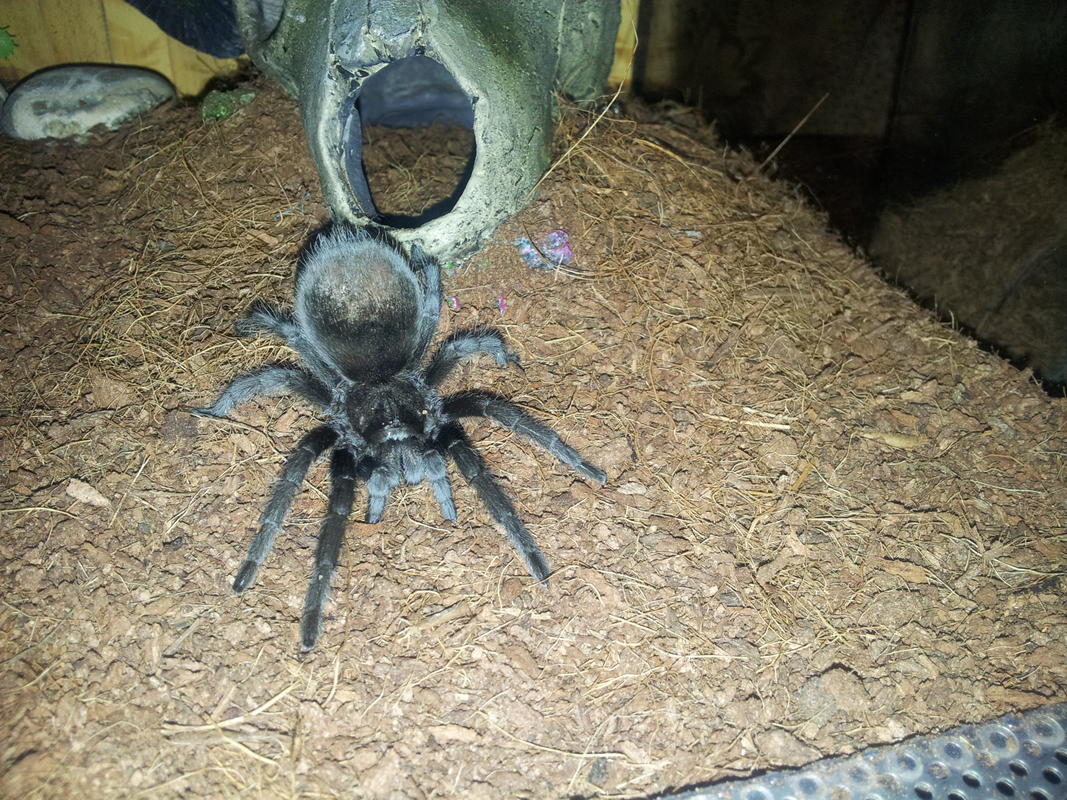 Уже довгий час стан павука не змінюється. Поки рухається куди хоче, хоч і смикається. Переселив його на ноутбук, він трохи гріється тому тут тепліше. Ну і поставив ще одно поїлку. Скільки часу взагалі павук може протягнути з ДС?