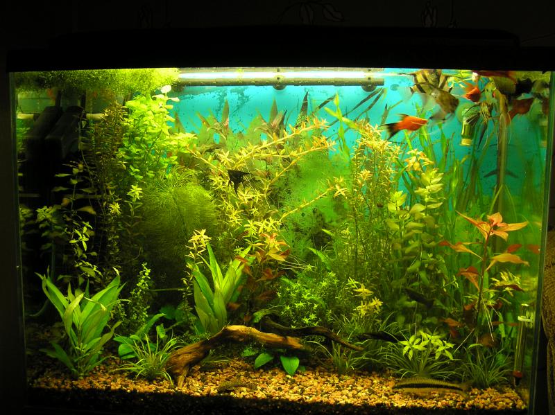 Мой аквас на 72л (чистыми), высота воды 38 см, 2 люмки 840 по 18Вт, 1 люмка 830 18Вт, 1 Hagen Aqua-Glo 20Вт. Перезапуск на прошлой неделе - на дне подложка JBL AquaBasis plus 2л. Собственно перезапускался из-за подложки - ранее эту функцию выполнял грунт для цветов  .