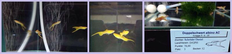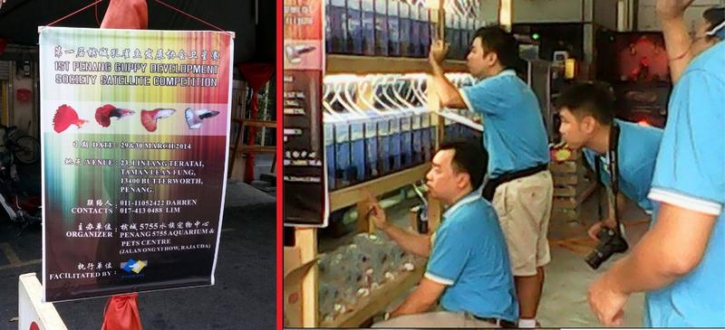В эту субботу 29 марта 2014 , в Малайзии , г Пенанг , прошла выставка Гуппи 1st PENANG GUPPY DEVELOPMENT SOCIETY SATELLITE COMPETITION . На фото гуппи прошедшие зкспертизу . Обычно на крупных выставках , энспертизу проводят пять лицензированных эксперта . Из суммы пяти выставленных оценок по 100 бальной системе , две крайние оценки - самая большая и самая меньшая - вычитаются , сумма оставшихся трех оценок делится на три . Полученный результат - является оценкой рыбы на данной выставке . На 7-ом фото судьи проводят экспертизу гуппи . Есть вытавки , по условиям которых , выставляются пары - самец и самка . Пары оцениваются по 150 бальной системе = 100 самец + 50 самка . На последнем фото три разные пары , принадлежащие разным владельцам . Получившие разные оценки от чемпиона в своей группе и далее : 1-е , 2-е место. В этом примере по два фото на каждое место , увидеть разницу на фото , а не в живую сложно , но тем немение у рыб с оценкой "чемпион" у самца длинный дорсальный и хвостовой плавники , у самки "чемпион" хороший развал заднего плавника .