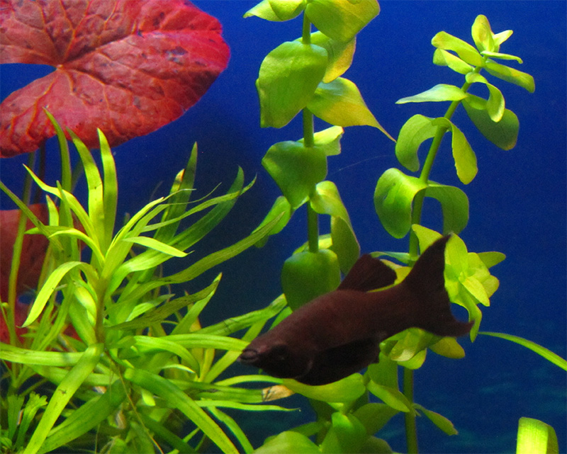 Но рыба оказалась домоседом, и отправить на процедуры удалось с превеликим трудом - выловить смогли только когда взбаламутили весь аквариум и вытянули всю риччию с роголистником. Я конечно извиняюсь за грубость, но моллинезии оказались сцы.... трусишками. В отличии от мечиков, те вообще без страха и печали.