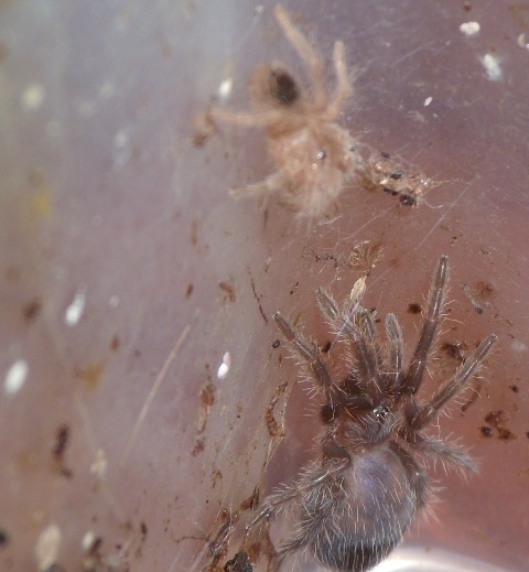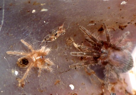 - выращивание с 1 линьки не представляет проблем - паук смело охотится на крупный корм, редко голодает без причины, стабильно линяет и быстро набирает в размерах.