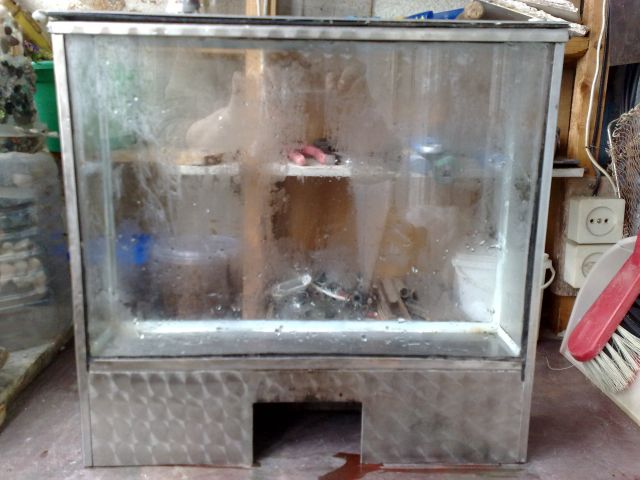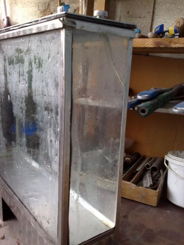 Продам переносной аквариум - 170 грн. Из нержавейки. Удобный для бизнеса - продажи рыбок на базаре. Имеется небольшая трещина на боковом стекле в верхней части аквариума. Трещина заклеена, не протекает и не мешает.