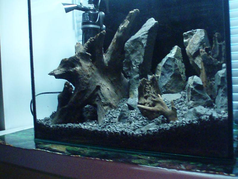 Vov4ik,Так намного лучше, но все равно что то "глаза колет" толи посередине камней много.. что то не вписывается в общую картинку.... попробуйте самые высокие камешки (от задней стенки которые находятся) переместить за корягу возле фильтра и мелкую корягу рожками к стеклу боковому направить. Среднюю корягу в дальний правый угол. Ну как то так я вижу если на пальцах.