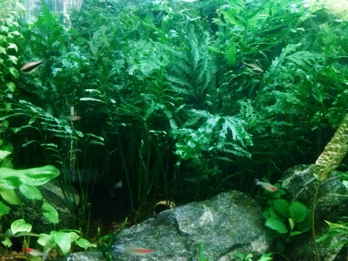 Большой куст Болбитиса Геделоти ( Bolbitis heudelotii). Длина листа около 60 см (не компакт). Подойдет для большого аквариума. Выращен в мягкой воде без удобрений и СО2. Свет 0,3 вт/л, экономлампы, продолжительность освещения 10 часов.