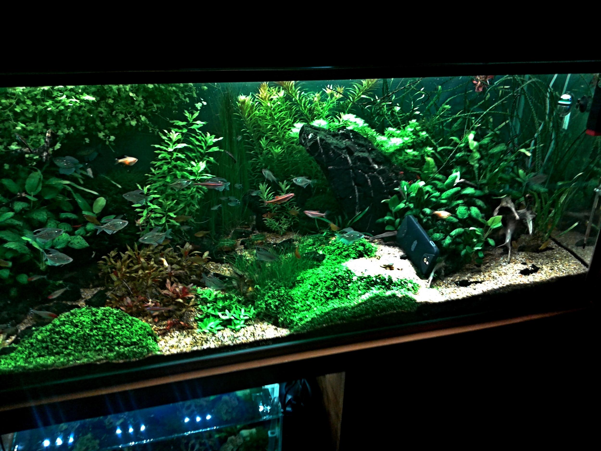 А мне понравился аквариум). Все растет ) и рыбасики в отличном состоянии. Все есть, но я бы добавил основу в композицию либо фактурные камни либо коряжку. Думаю это помогло бы разбить площадь акваса на зоны.