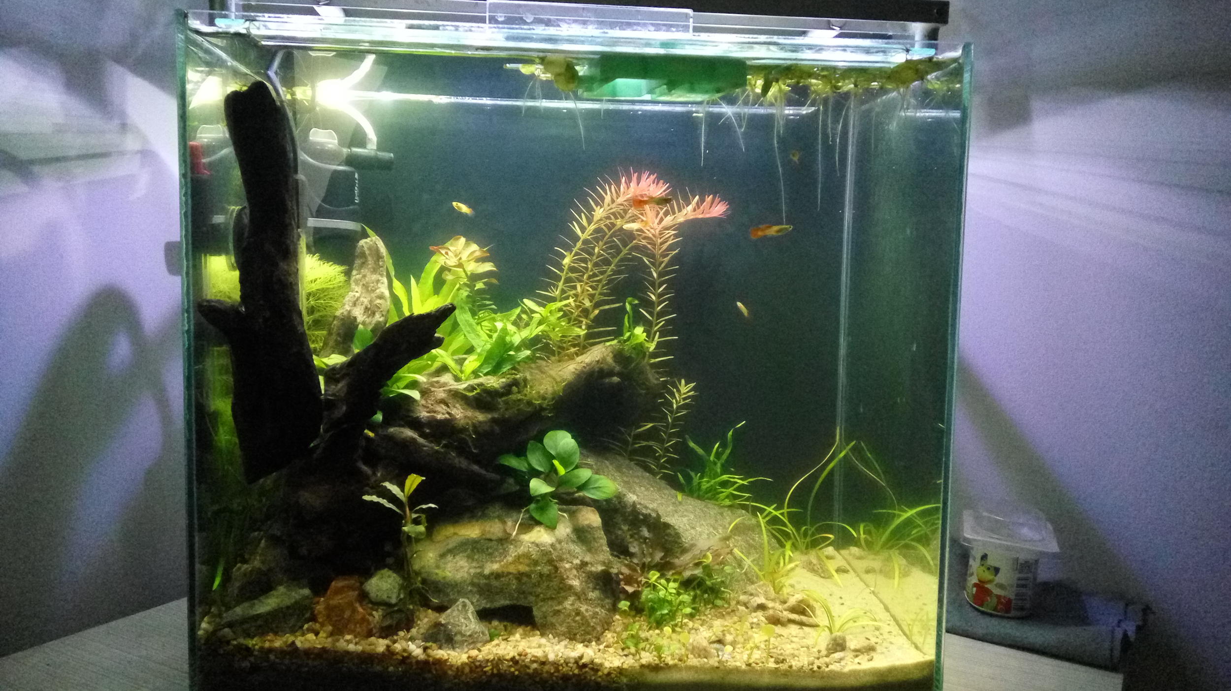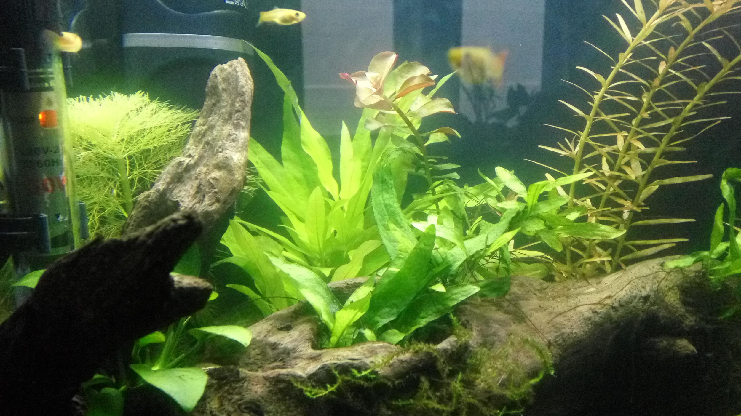 Сегодня заскочил на работу на пару часиков. В помещении ещё 29 отключили отопление. Термонагреватель выставил чуть больше, но все равно температура падала до +14. Сторож чуток добавлял. Сегодня по приезде была 18-20. Вода чистая. Подменил воду, Промыл корягу. Пересадил индику. В общем чуток навёл порядок. Запустил Малехо креветосов из домашнего аквы...