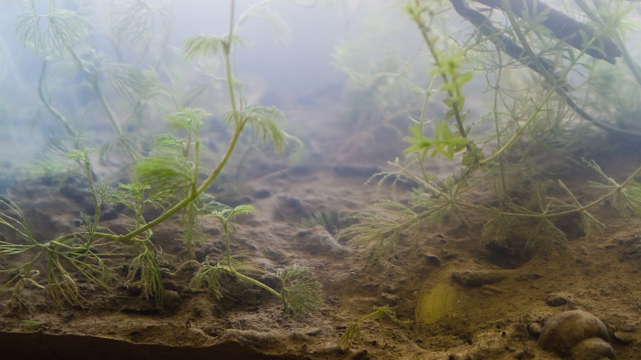 Причина цього проста і банальна. На початку, коли риби були маленькі, елодея ледь не перемогла всі інші рослини, її стебла витягувалися до 30 см у довжину і розросталися на багато гіллячок, утворюючи пухнасті кущі. Але, як і з куширом, ситуація змінилася після нового року, коли риби підросли і нагуляли апетит. Я був шокований, коли побачив, як карась пожовував лист елодеї (всі розумні книги пишуть, що елодея виділяє речовину, яка здатна отруювати дрібну рибу). Але й не поїдання її знищило.