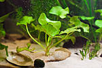 Рослина, яка може жити за будь-яких умов і в будь-якому оточенні. Із трьох, посаджених на початку рослин, одну я подарував, оскільки вона за перший же місяць переросла акваріум, інші дві дотепер хорошо почуваються, регулярно викидаючи нові листочки, і намагаються вийти на поверхню; із цим їхнім бажанням борюсь тими ж методами, що й із німфеєю тигровою.