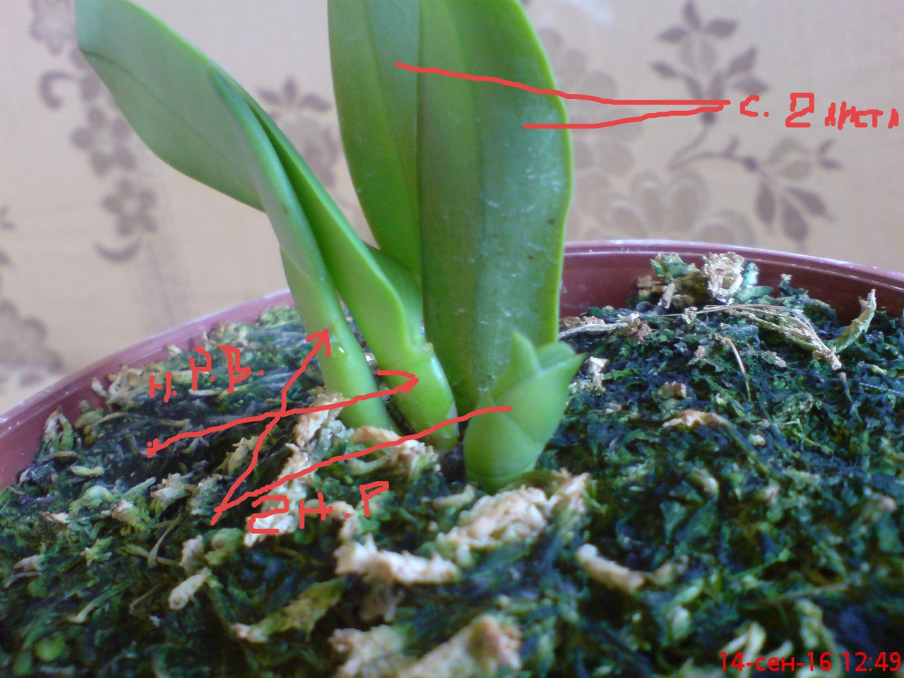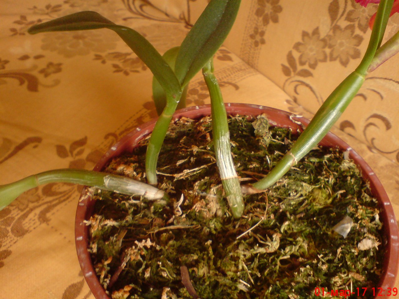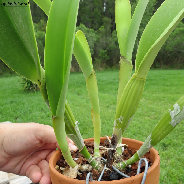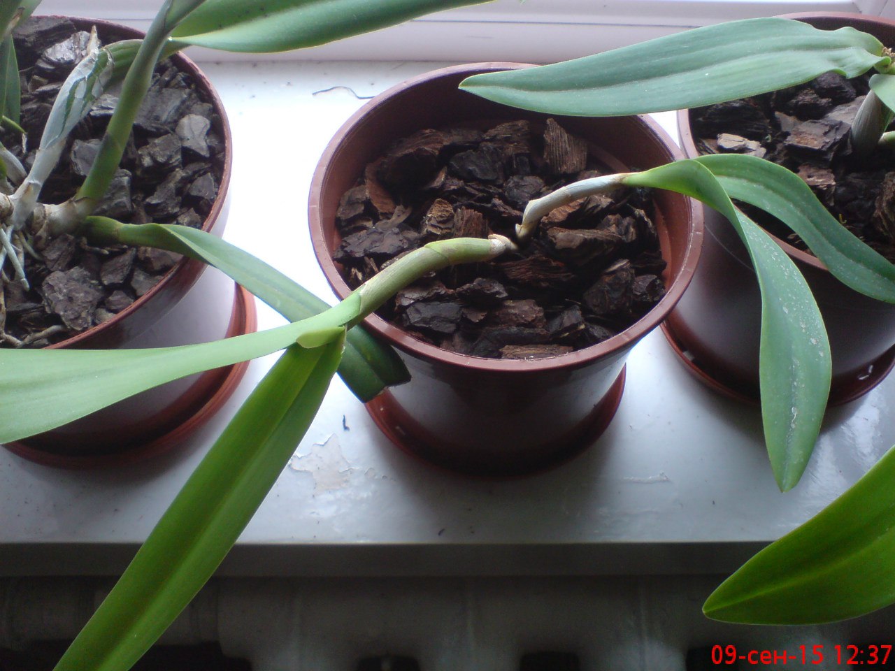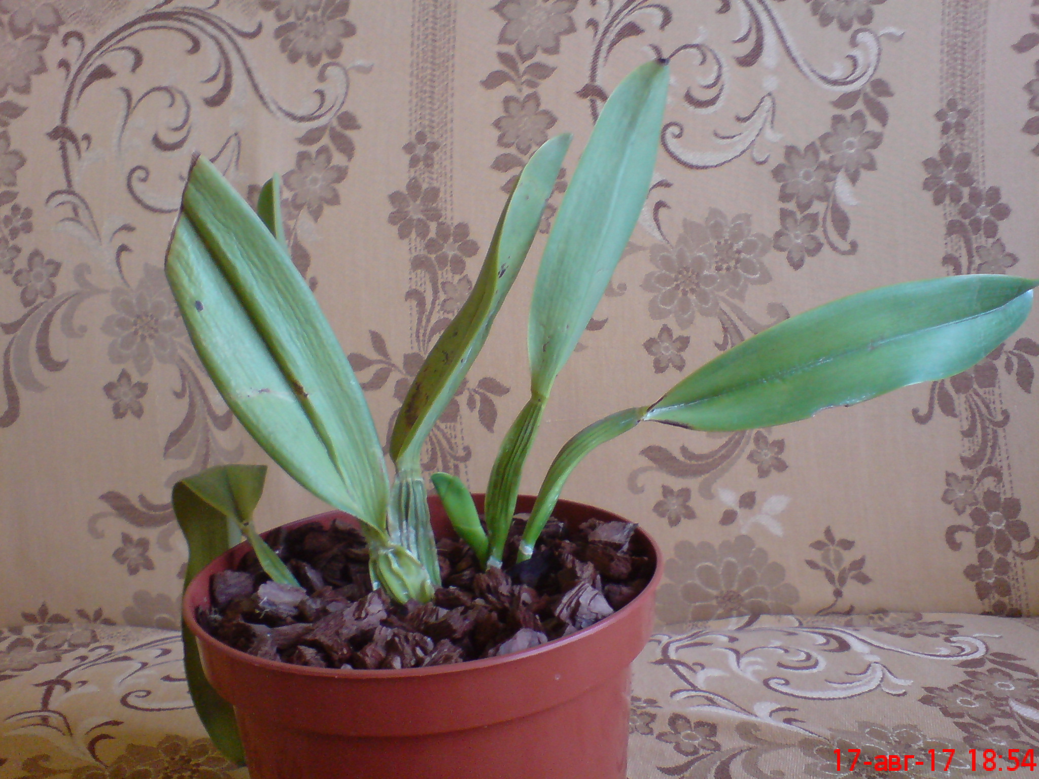 Вот так дорастила прошлый рост и пустила еще два сразу моя каттлея Довиана, что покупал в мае у Даши. По-моему не так и долго придется ждать цветения.