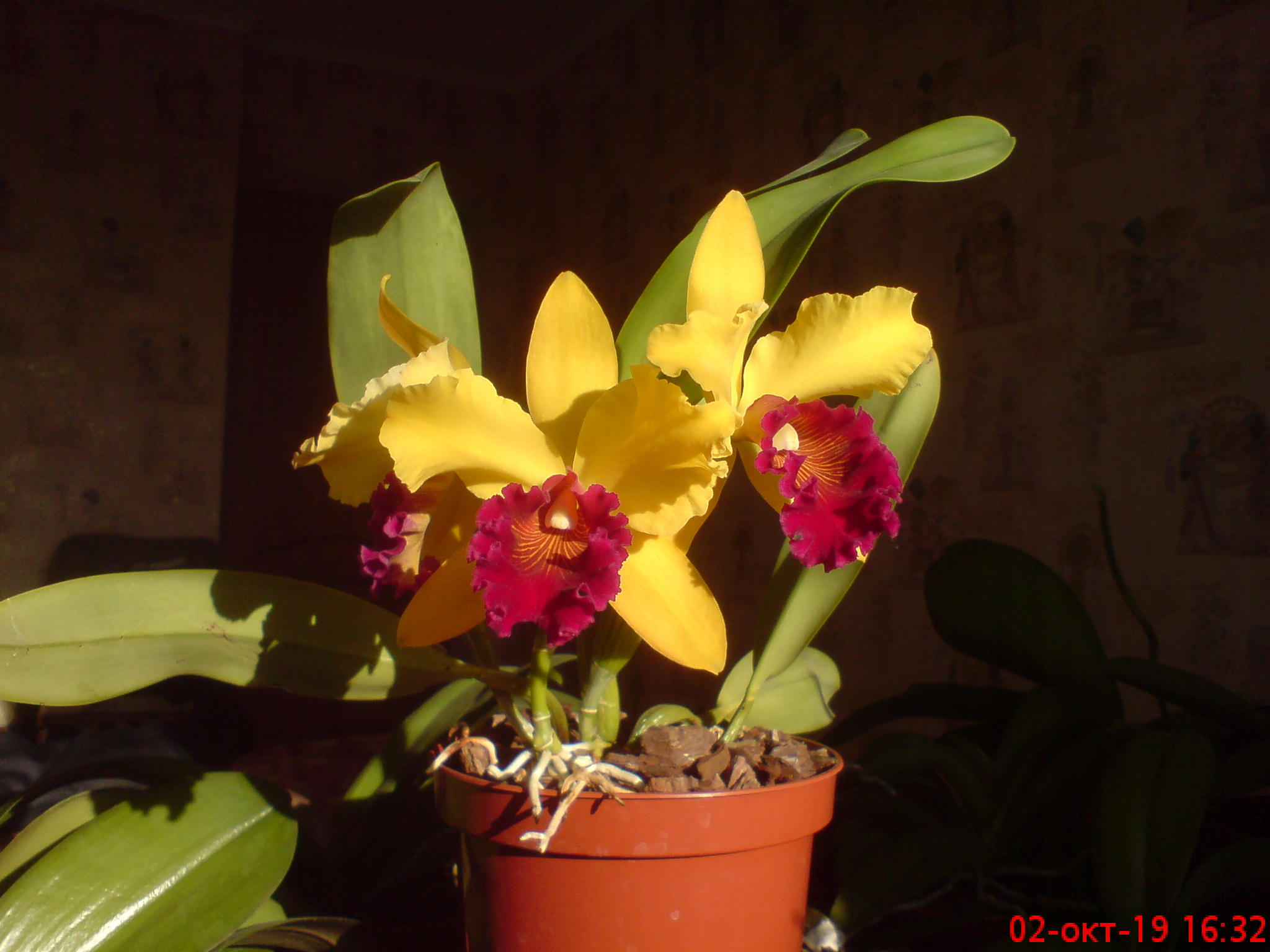 купил и посадил Cattleya dowiana aurea (фото цветущей не мое, это какая она должна быть, заявлена производителем)