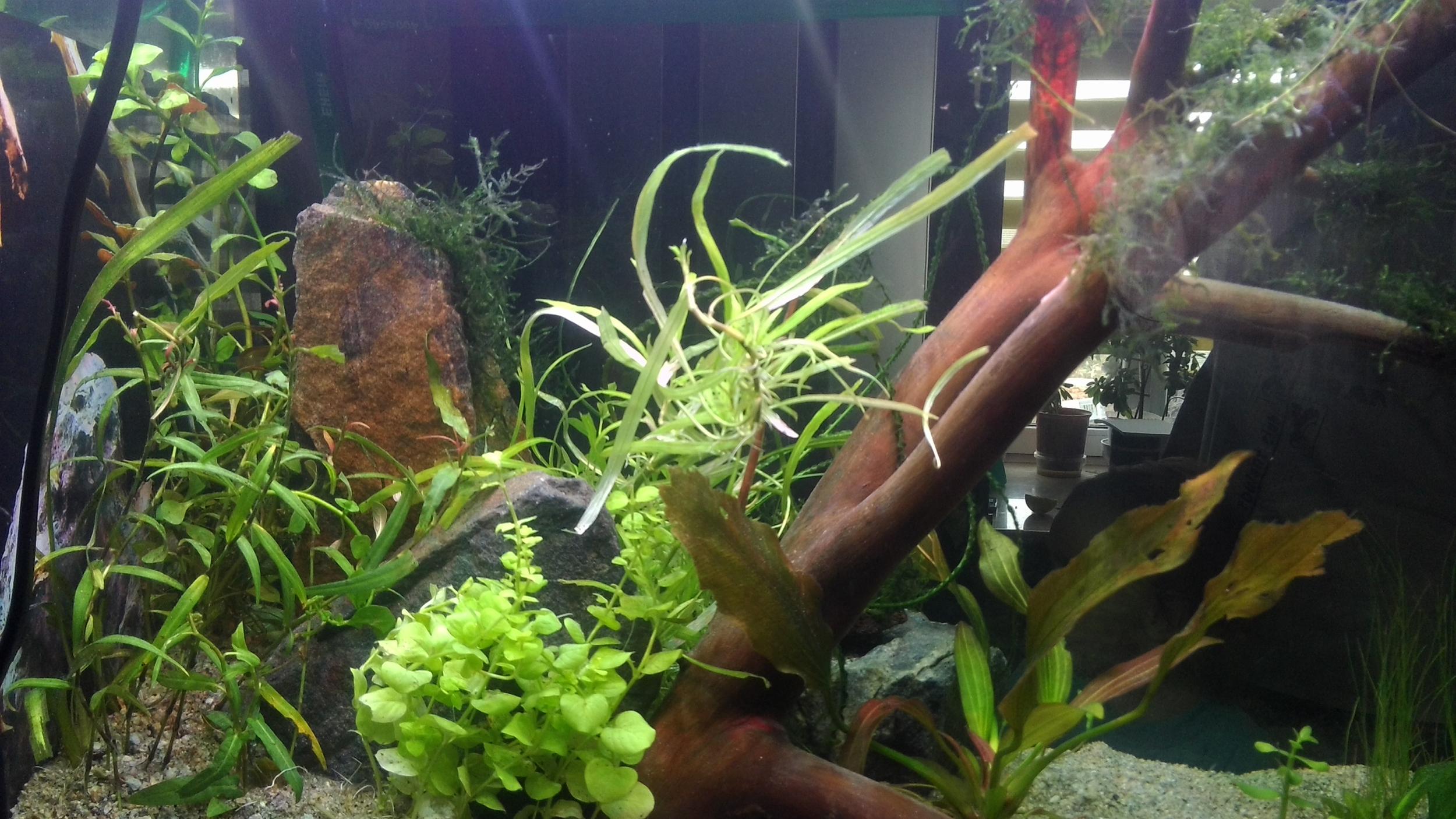 Lisenko, спасибо, вы конечно мне польстили:-) но я даже не притендую на Амано, и я уже писала что аквариум стоит на просвет, а голандец на просвет, имхо не подойдет, стоит в гостинной, да и у меня есть другие которые не хотят, как муж говорит, одну траву. И не ужели нельзя наблюдать и учится и в таком аквариуме? Грунт вроде нейтральный, добавила только корневые удобрения. Согласна что может и коряга лишняя, но пока будет с ней а там посмотрим:-)
