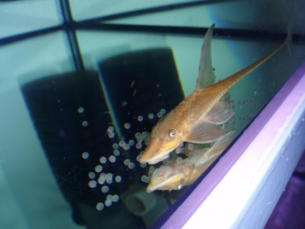 Если место расположения метки икры, то и такое бывает. Сначала мечут на стенки аквариума,другой раз бывает на дно аквариума. Ежели вспомнить первые нересты стурисом ,еще конца СССР,начало 90х,то тогда стурики метали икру не на боковые стенки аквариума,а на трубки лежащие на дне!