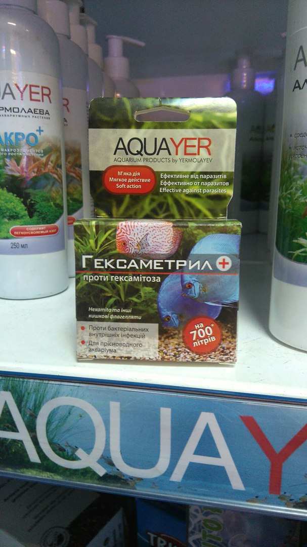 гексаметрил уже опробован, благодаря подаркам от производителя.Отлично помогает от кишечных жгутиконосцев у цихлид!