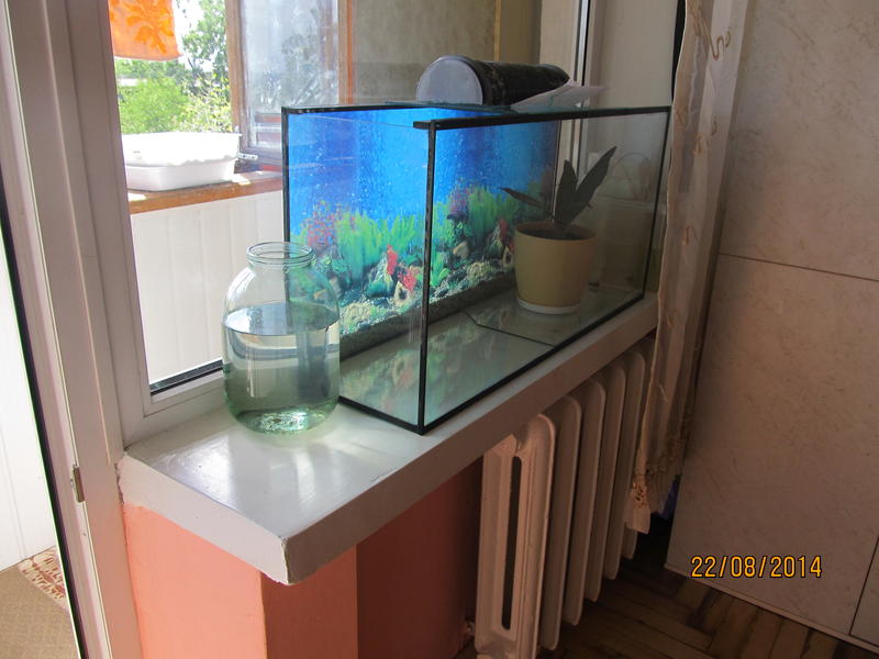 mumia, думаю вопрос стоит еще и в нагрузке на подоконник -я так понимаю он пластиковый-под металлопластиковыми окнами(по фото тяжело понять-не увеличивается)... а значит на 80см будут давить 100 (+-) кг веса (-это дополнительный к воде вес грунта, камней и оборудования)...