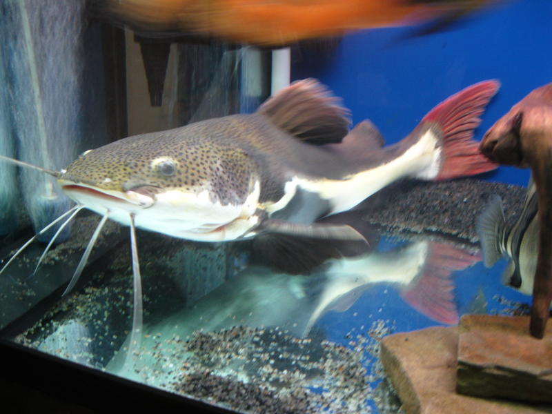 мои тоже не кого не едят ,правда в этой банке только они пару синадонтов и окунь.ну есть маленькие их сородичи не трогают. когда в общаке сидели тоже нечего ,там правда все им не по зубам были,зато сидела пара самец 27см самка 24см и краснохвостый глотнул самца .