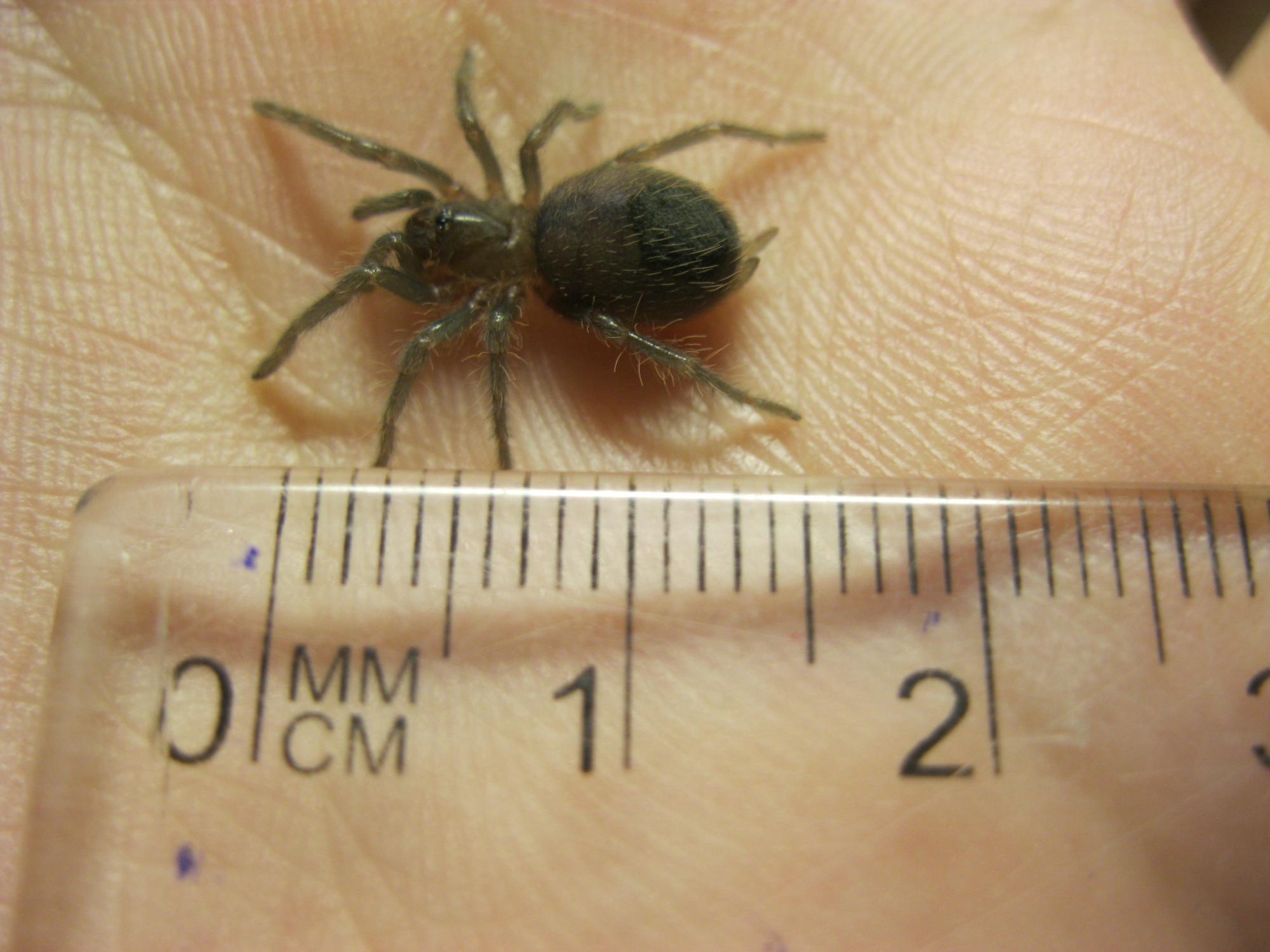 С фототехникой у меня проблемы, так что постараюсь максимально точно описать словами. Паук размером 2-2,5 см с лапами. Емкость — пластиковый контейнер, круглый. Глубина 4,5 см, диаметр 6,5. Грунт - 2см. Вчера отсыпал немного грунта, по совету пользователя Hierophis, оставив ~ 1 см.
