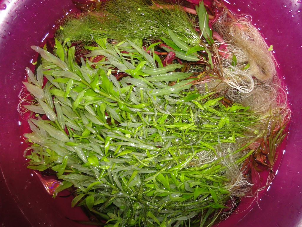 1. Трава всякая-разная (почвопокровка, анубиас, бликса, какой-то рубин красный, папоротник и т.д.) - 1,5 ведра где-то. 70 грн за всё.