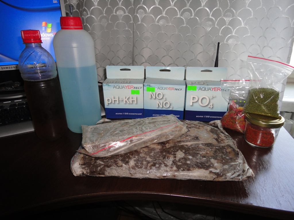 2. Корм сухой (Тетра разный вроде) + корм замороженный 1+ кг (артемия) + тесты 3 вида почти неиспользованные + УДО свежие МИКРО и Железо (делал всегда сам по рецептам Ермолаева, хватит на акву 250л где-то на 1,5 месяца при интенсивной подаче СО2). За всё 130 грн.