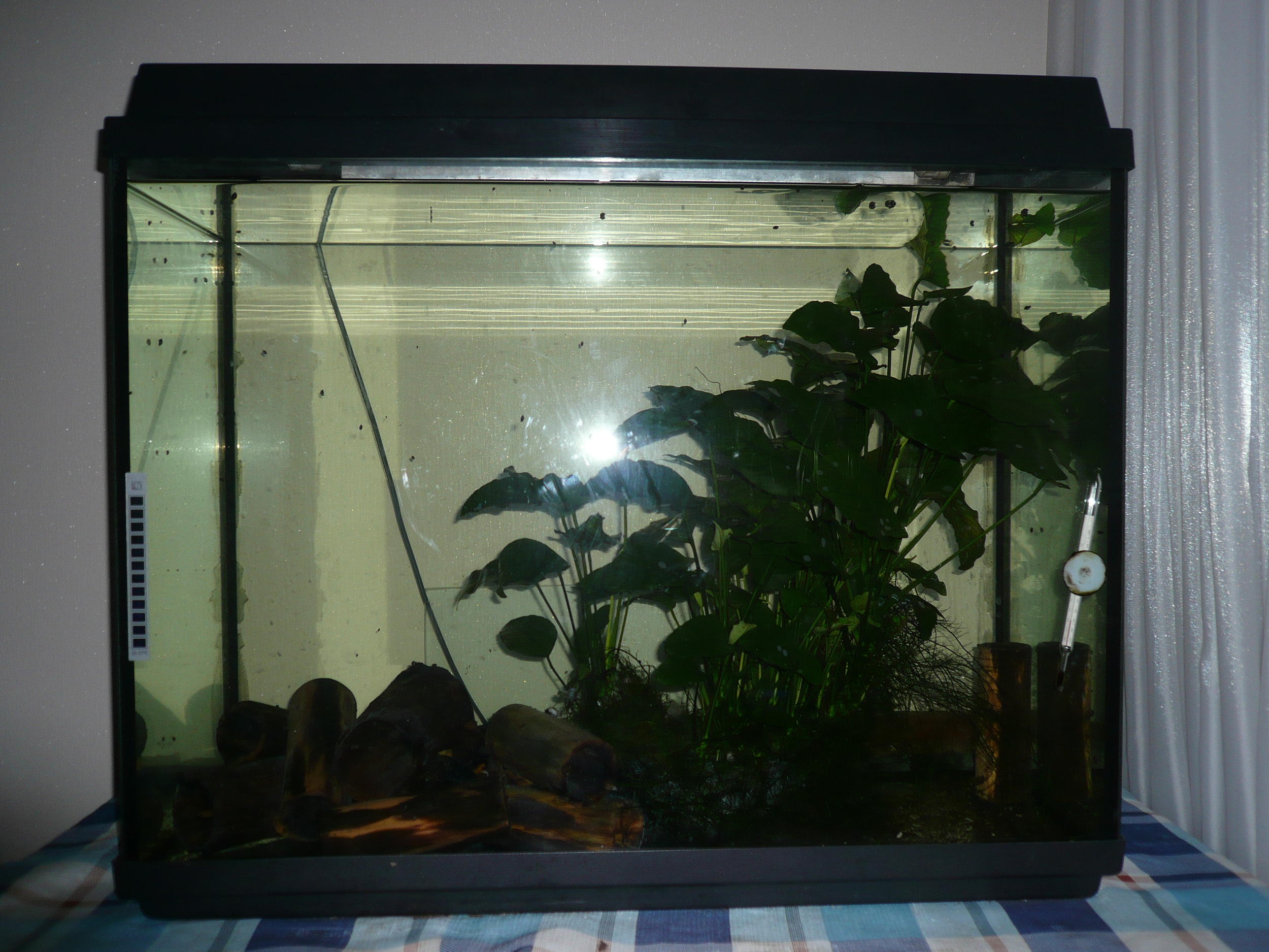 Мальки (хотя какие они уже мальки... третий - четвертый месяц...) живут в "Нанайце". Это бывший отсадник на 7 литров грязными. Совместно с пестриками проживают и более поздние мальки. Короче, кто выжил после рождения в большом акве, переселяются сюда. В связи с этим существует "небольшое" перенаселение wacko.gif , рыбов штук 20-25... А после сегодняшней ночи и того больше...