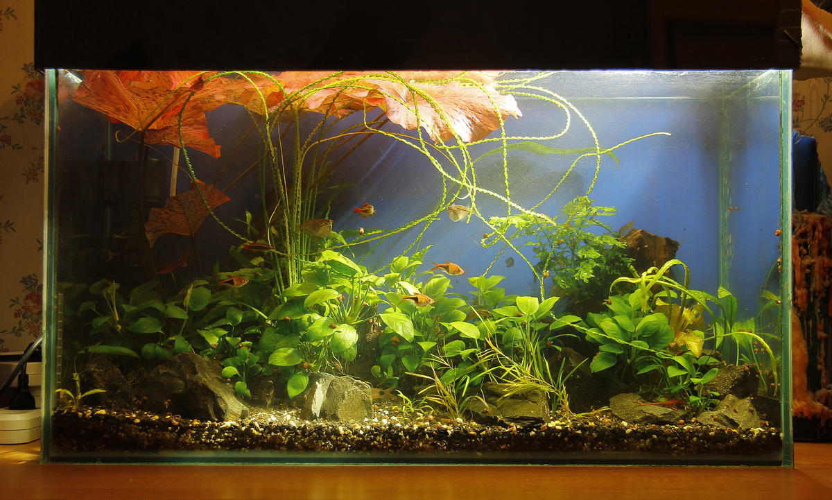 Зимой экспериментировала с фотографированием аквариума добавляя источник света (вспышку) сбоку (дырка для кормления в крышке). Фото получается интереснее, объемнее. Жаль не хватает светочувствительности фотоаппарата. Canon Power Shot G11.
