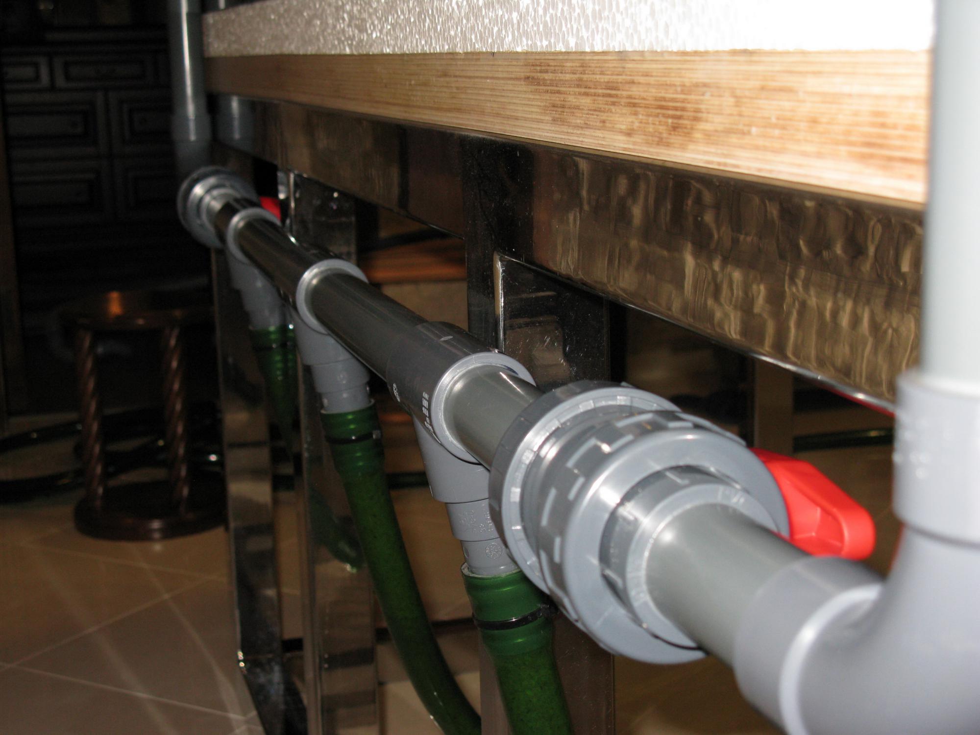 Ко всему мне не нравился внешний вид изогнутых заборных труб в самом аквасе.Все переделал + поставив рзъемные краны теперь можно перекрывать систему и чистить , не сливая пол аквариума!