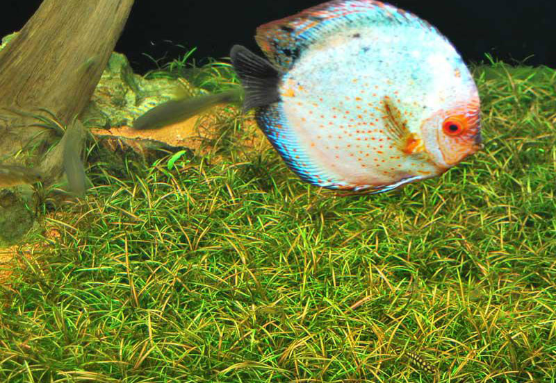 Глоссостигма (Glossostigma elatinoides) самая лучшая травка для создания коврика в аквариуме. Образует очень красивый, ровный коврик по всему дну. Самая не прихотливая, из всех почвопокровных растений.