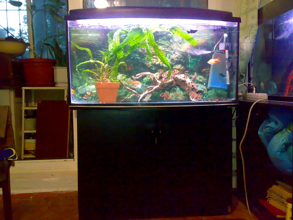 неспеша продам кто больше предложит хороший аквариум..100см 50см 40см(макс радиус)толщина стекла 8мм.немного подклеивался.стоит сейчас с рыбами и водой.крышка акваэль.лампы PHILIPS TLD 30w/89 made in holland AQUA RELLE 2 шт.на фото включена одна лампа вторую отключаю тк светло и так.тумба.коврик под акву.фон.автоматическую кормушку в придачу.старт 1100гр.на фото как он сейчас и стоит.могу подарить еще фильтр флювал 203 в неизвестном состоянии тк сломалось одно крепление.