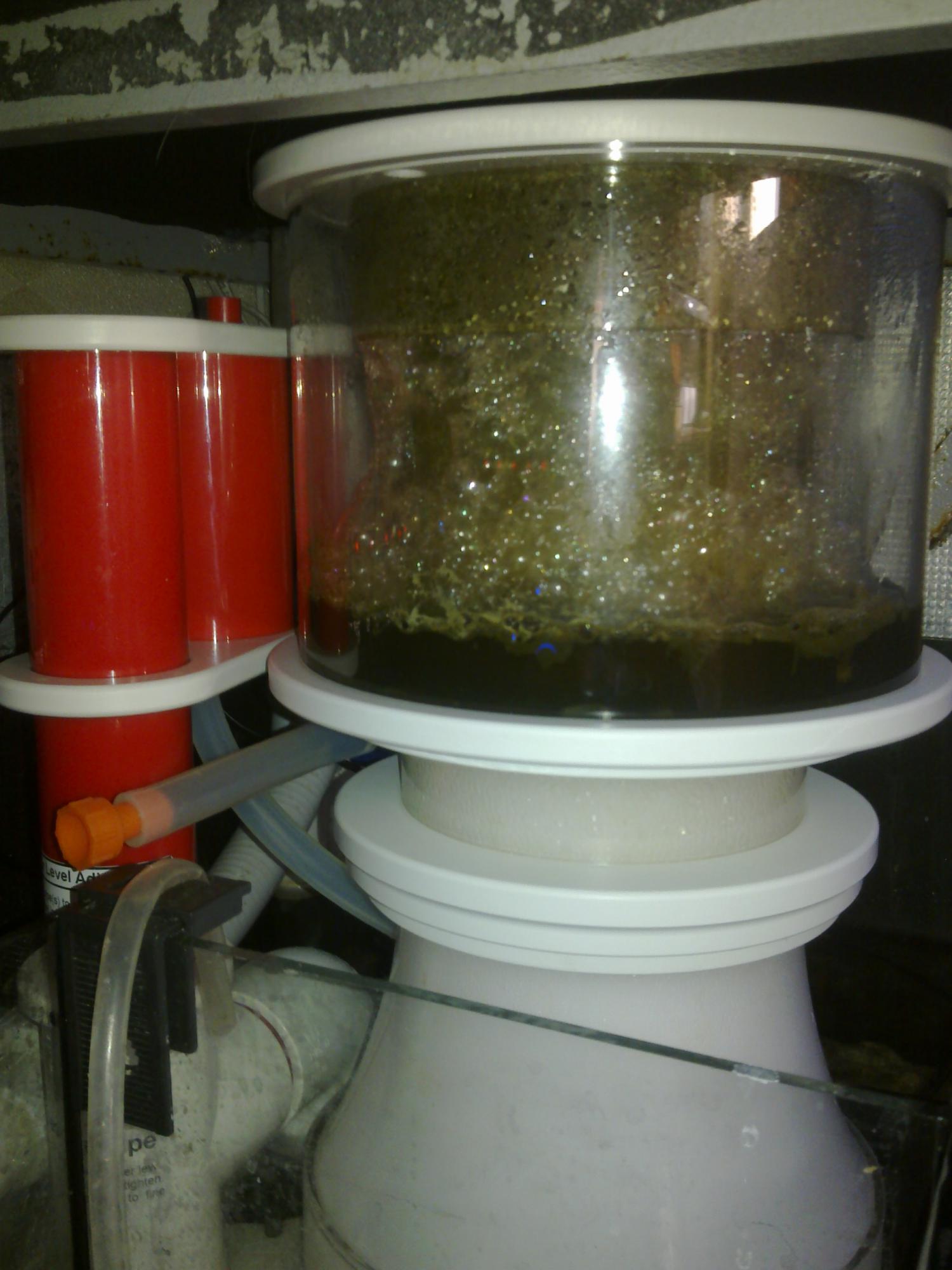 Скиммер выбивает примерное 200 - 250 мл. в сутки всякой дурно пахнущей бяки.При всей не слишком понятной конструкции очень легко регулируется и запускается.