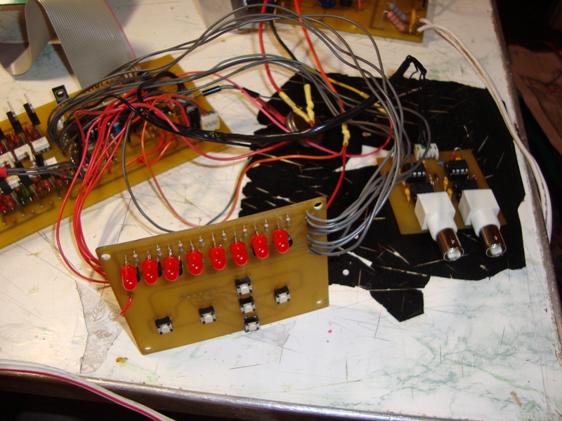 Вариант второй, плата переделанная, корпус из окрашенного акрила. Плата кнопок сидит на разъёме, проводов нет. Индикаторы каналов распечатаны на основной плате, (только зачем они нужны????))). Для связи с компъютером использую шнурки от соток, просто впаиваю вместо родного разъёма 3.5мм джек.