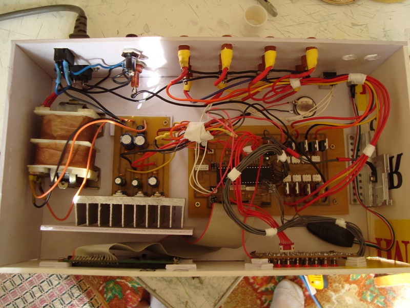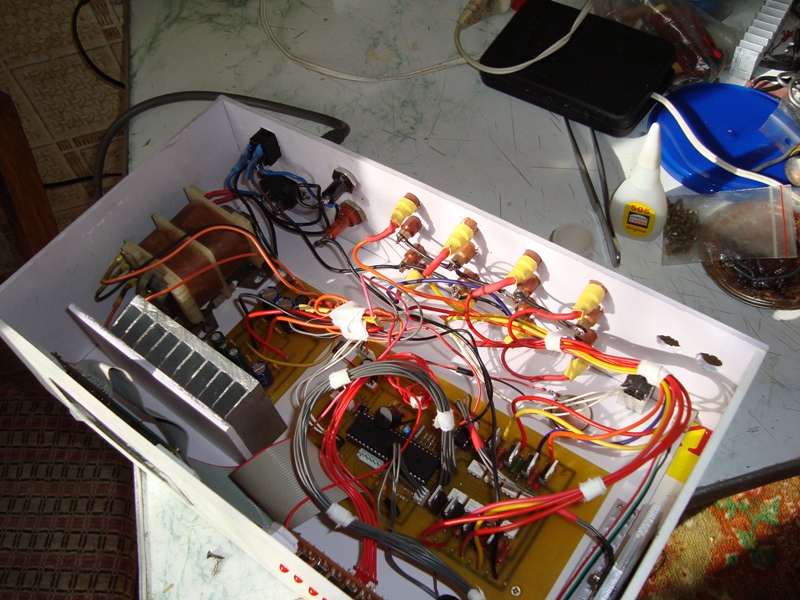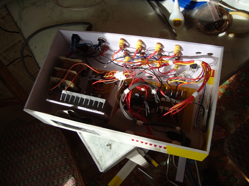 Вариант третий, микро))) Плата разведена с ноля, под смд микросхему, все остальные детали обычные, на корпус выведено только четыре розетки, но на плате разведены все 8 каналов.