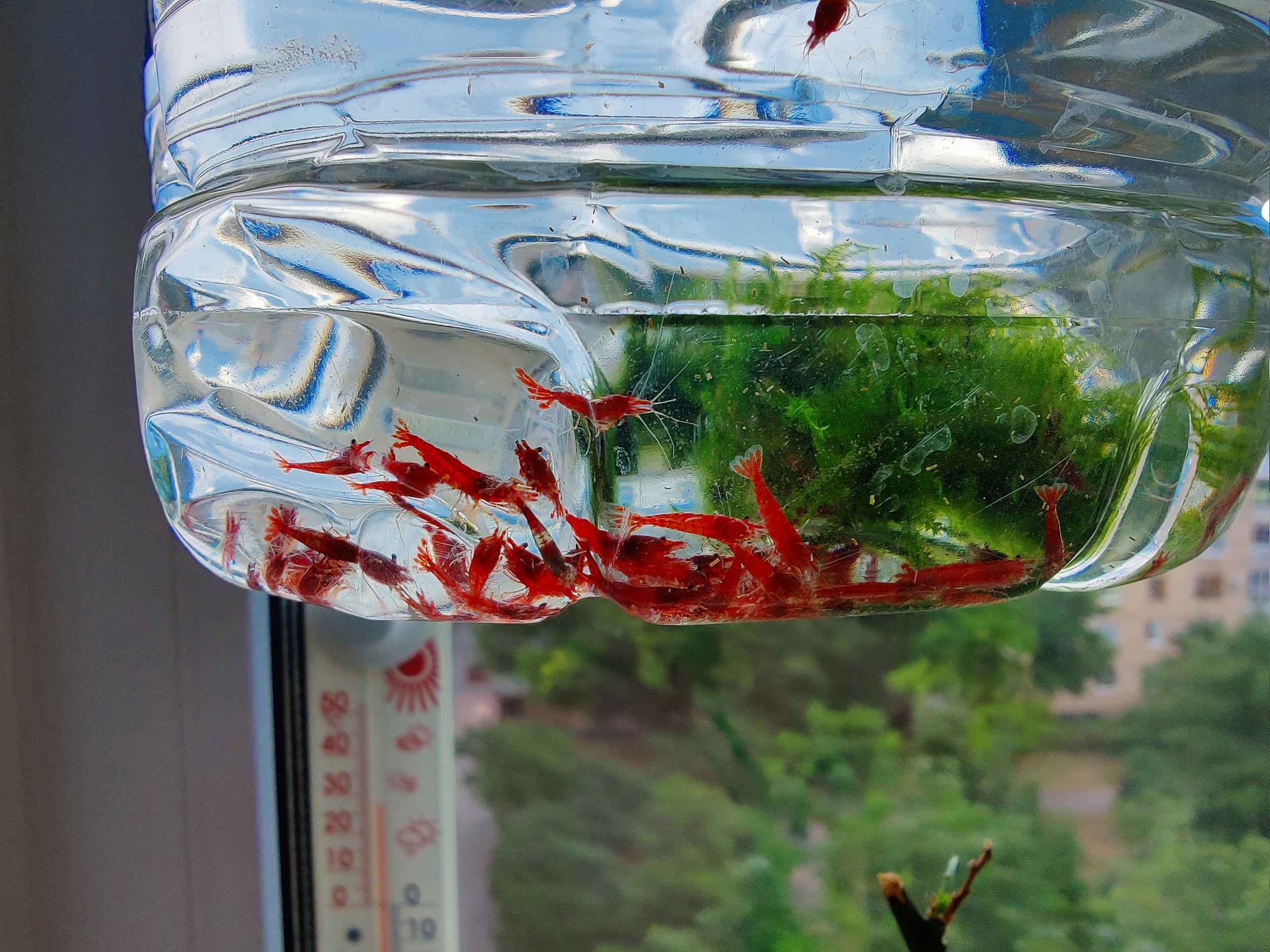 Креветки содержатся в водопроводной воде, желательно в травниках с мирной рыбой.