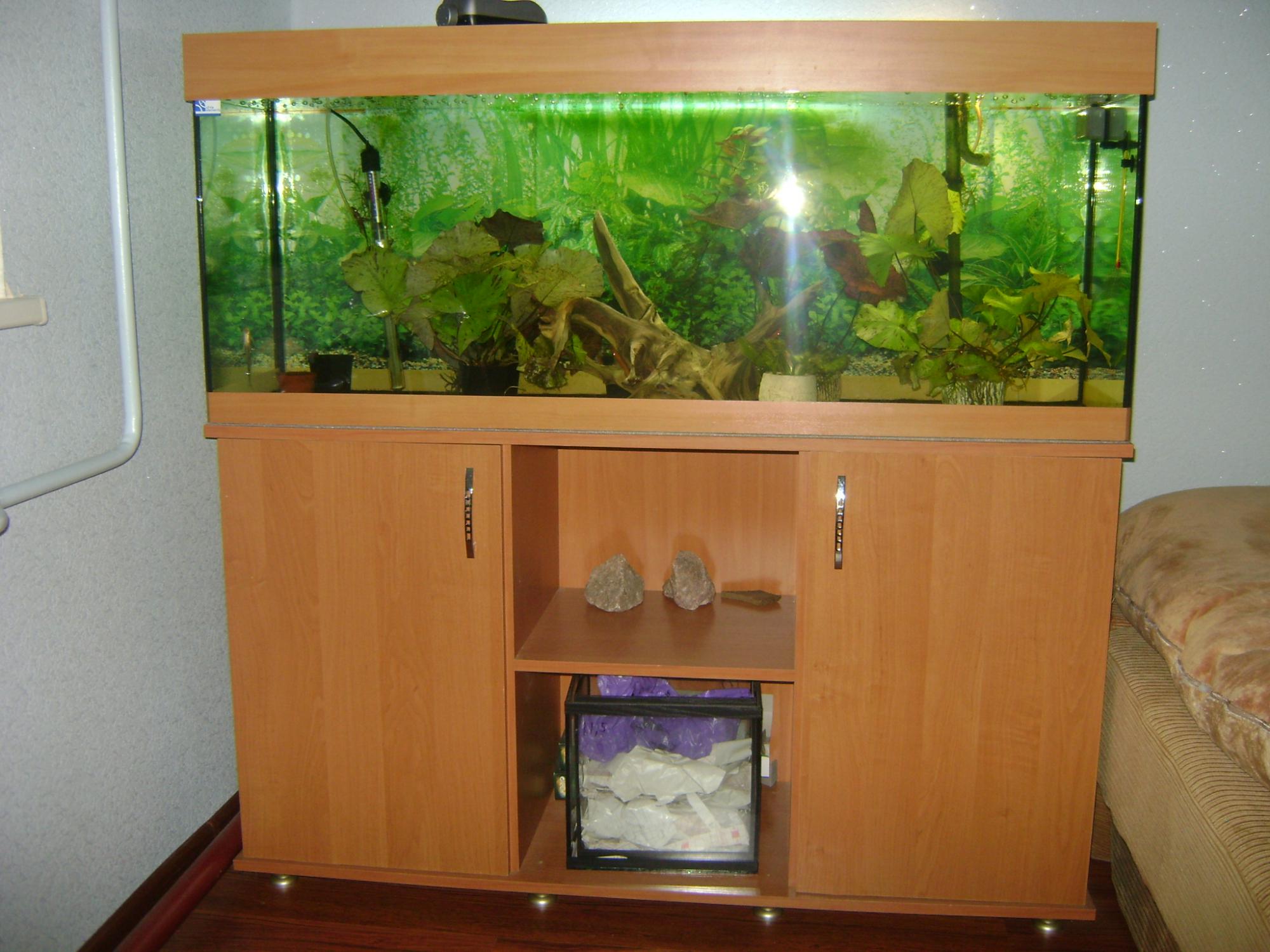 Продается аквариум на 200литров с тумбой и внешником!!!Аквас делался на заказ:Д-120см,Ш-38см,В-50см,стекло-6мм,внутри покрывные стекла,сверху стеклянная крышка с лампами 3 лампы по 18ватт и 2 по бокам патрона под простые лампочки!!!Тумба из ДСП также делалась на заказ под аквариум!И вильтр внешний ATMAN EF-4!!!В эксплуатации все ровно год,все в отличном состоянии,сколов,царапин,течей нет!!!Цена вопроса 1800гр!!!
