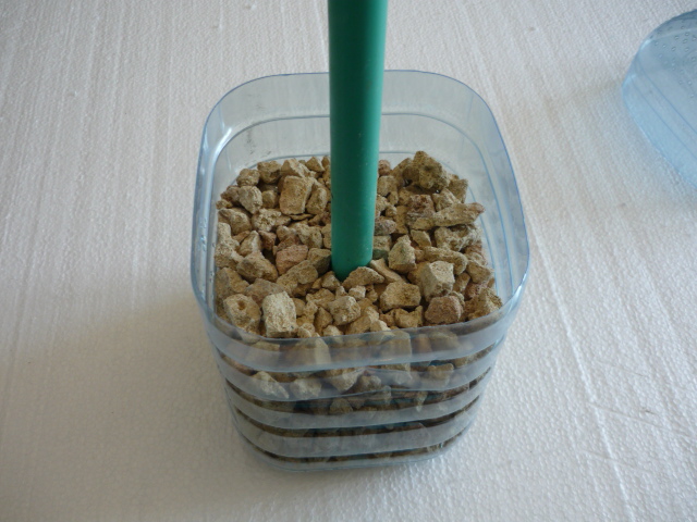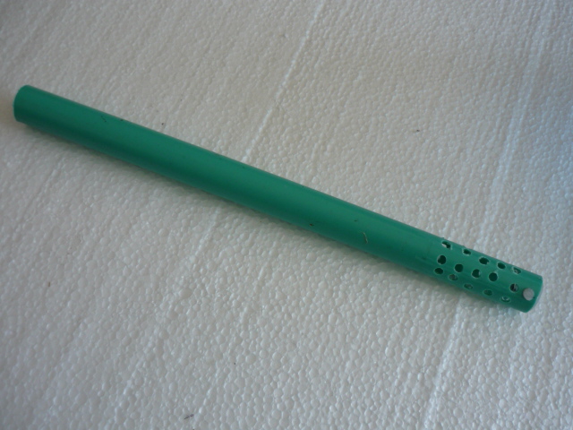 В пластмассовой трубке сверлим отверстия, заглушаем отверстия трубки куском шприца (заглушка нужна для того чтобы щебень не попал в трубку, но об этом ниже) и фиксируем его с помочью палочки от чупа-чупса (рис.6).