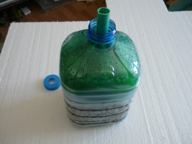 кто делал подобные фильтры подскажите пожалуйста можно дырки сделать внизу бутылки,а помпа просто сверху без перфорированой трубки? как по мне так и проще и производительней или где подводный камень?