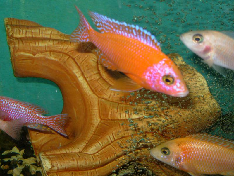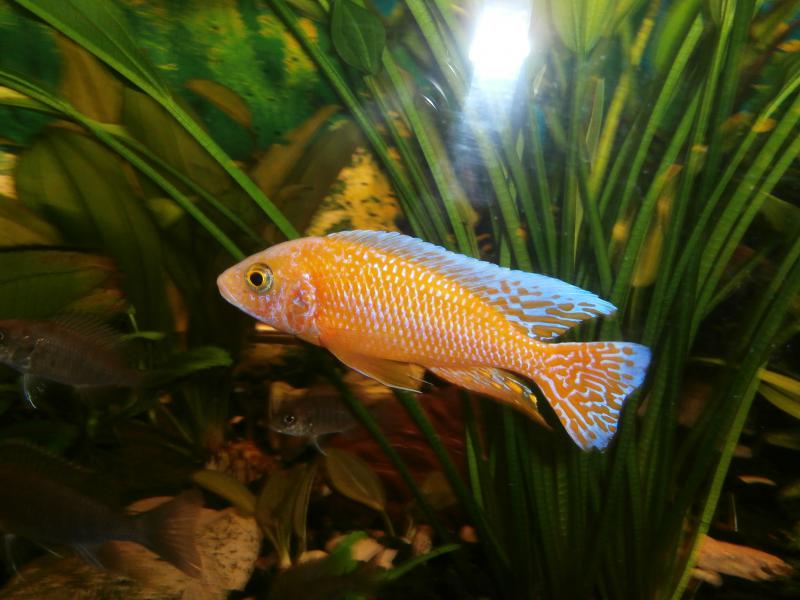 - брал Pseudotropheus saulosi coral, самец полностью не окрасился,самки от ярких оранжевых до тусклых цветов