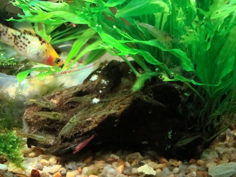 Непривердливые в содержании, недорогие в цене, и при этом интересные для наблюдения, эффективные чистильщики, настоящие трудяжки.Вот пример ,коряжка опущенна в аквариум, и через минуту её уже оккупировали креветки. Когда установиться баланс основным жителями планируеться Тетра светлячок, эритрозонус (Hemigrammus erythrozonus) количеством 15 шт.