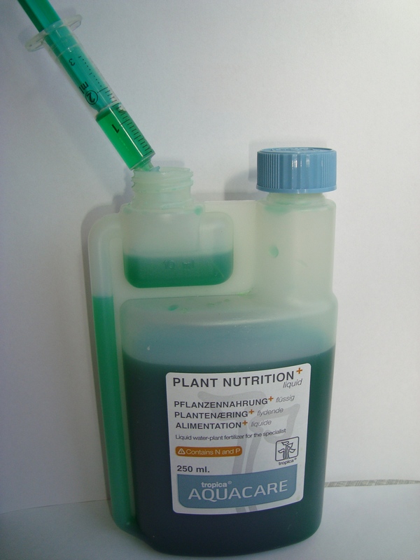 5.03.2012г. была сделана первая подмена воды (50%) 3 части осмоса + 1 часть водопроводной воды. Внесено 1.5мл. удобрения от компании Tropica. 1,5 мл. было отмерено вот так.