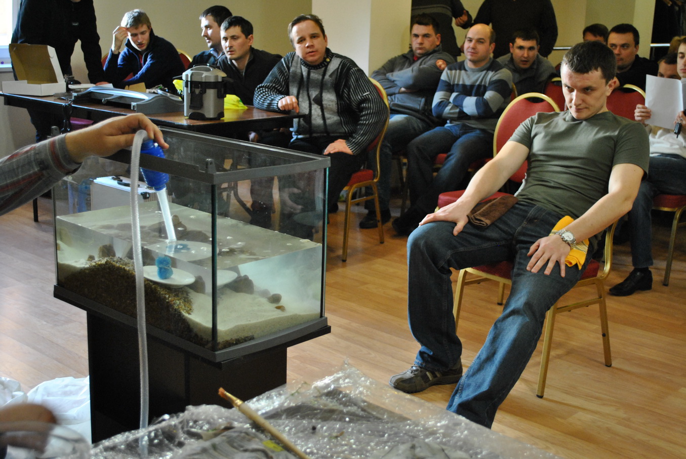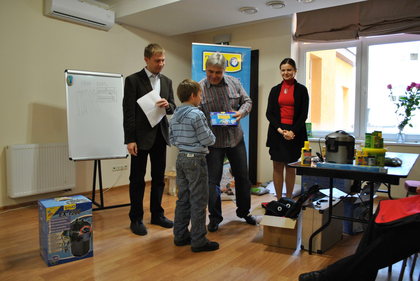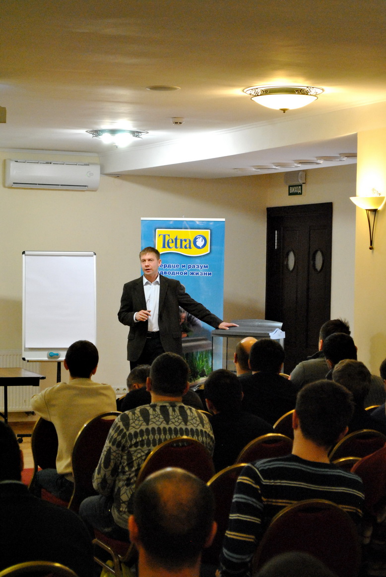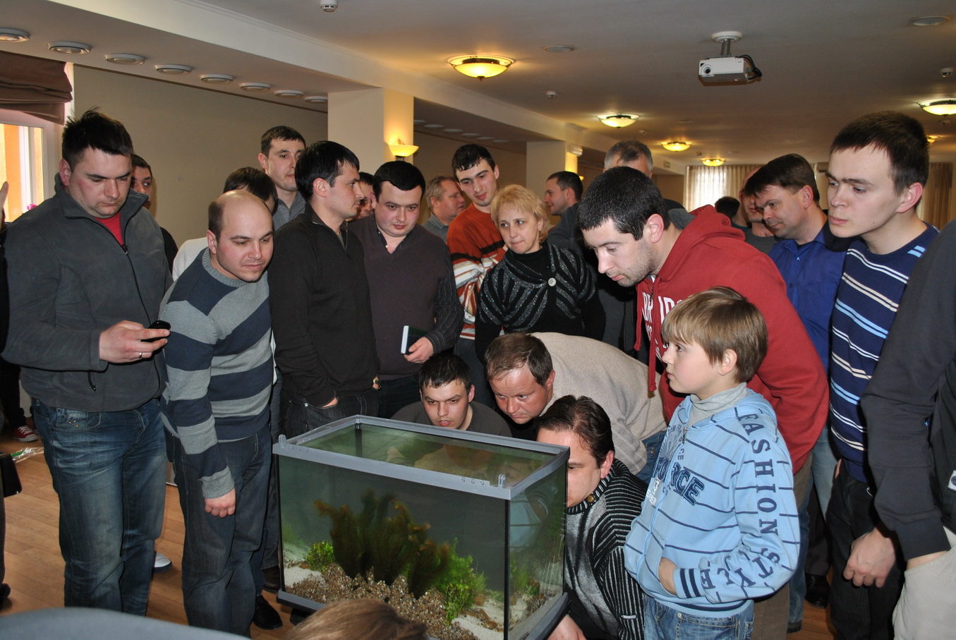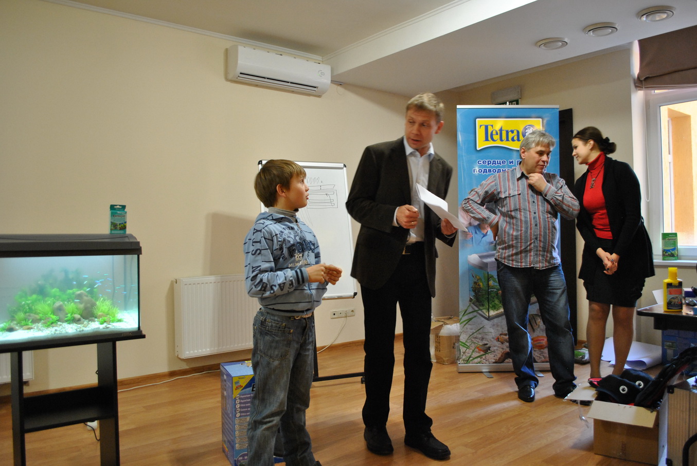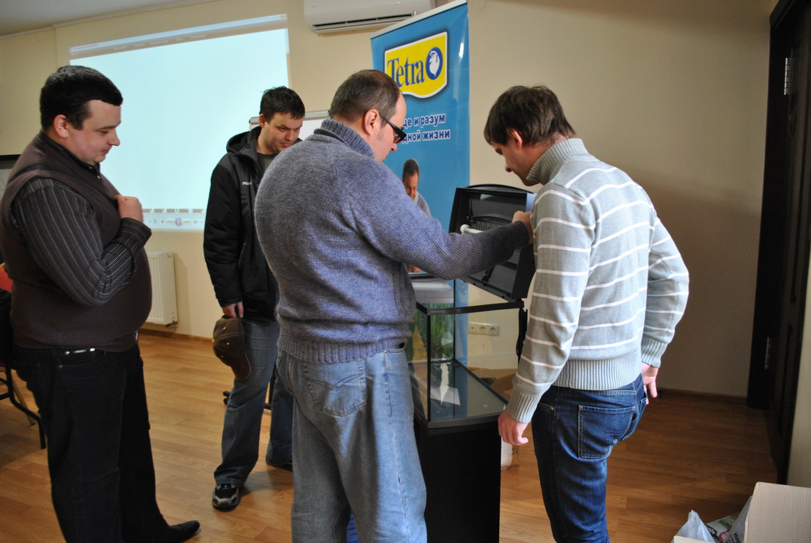 Вот этот человек – истинный любитель аквариумистики. Он приехал на заседание клуба в свой День рождения. За что и «схлопотал» подарком от ТМ Тетра