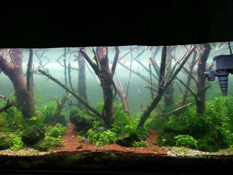 Растения для скейпа:мох,похожий на виппинг,но более изящный.Он будет на всех ветках и по максимуму скопирует свисающий мох как на деревьях в парке.Стволы деревьев и ветки местами буду декорировать кладофорой,чтоб создать зашмелость.Дно аквариума будет покрыто,гидрокотилой,мхами,папоротниками,глоссости гмой,элатиной.