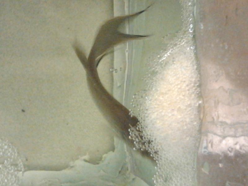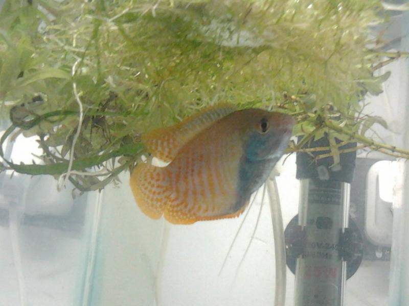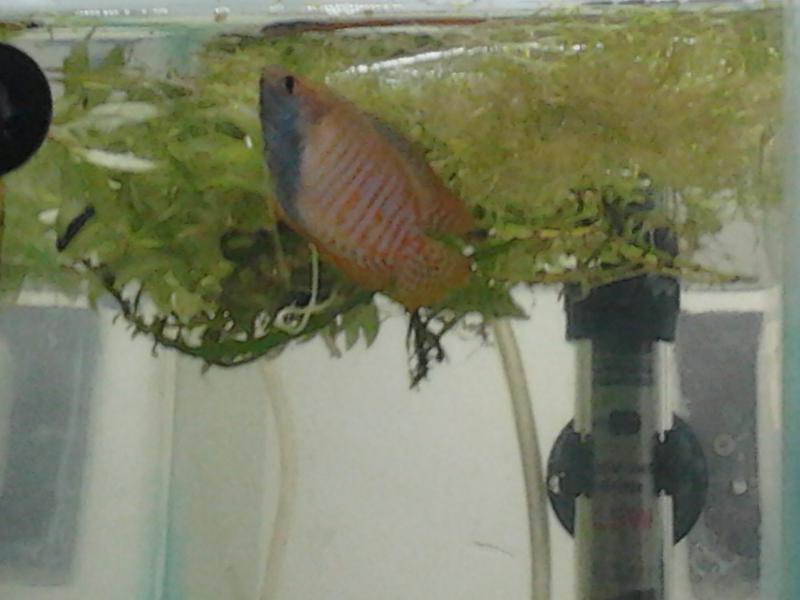 От на ваш розгляд даю декілька фото мого "хлопця", який збудував теж я рахую не менше гніздечко, віднерестив "дівчинку" і дуже ревносно доглядає за кладкою. Я вам скажу коли піднімаю покровне скло то він (самець) на декілька сантиметрів вискакує з води, кидаючись на мою руку. От такий він "злюка"!!!