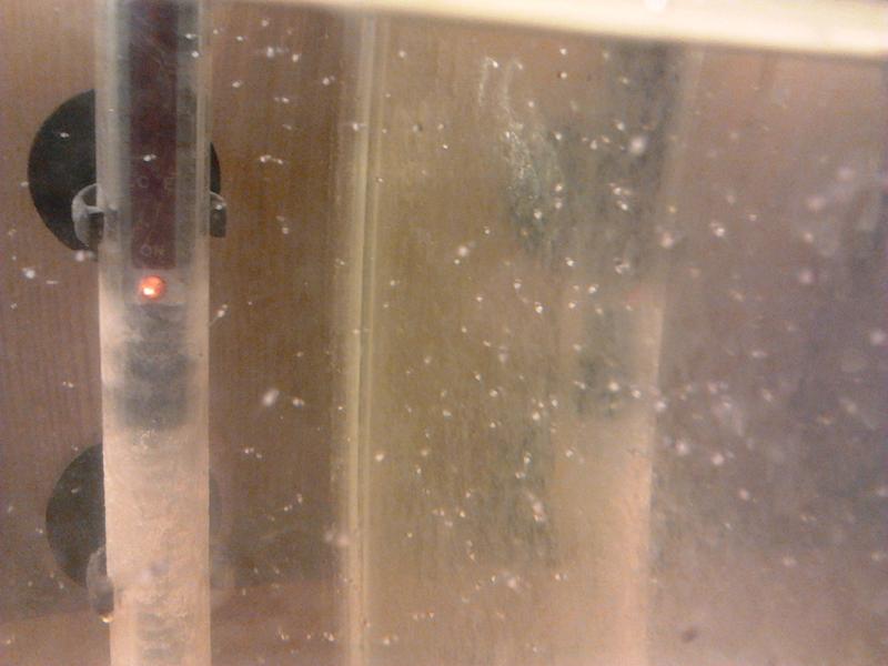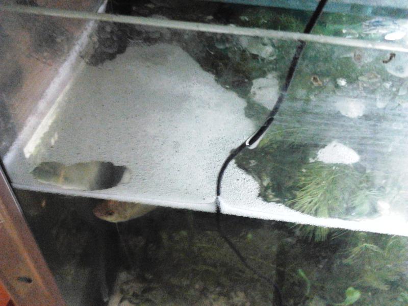 фото №9, 10, - самець гурамі золотого готується до нересту, дує гніздо. Підміна води дощовою, відстояною з підняттям температури до 29 градусів.