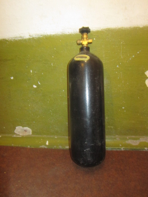 11. Огнетушитель углекислотный ВВК-3,5(ДСТУ4297:04), перезаряжен 09.2011, следующая перезарядка 09.2012г. Диаметр 14см., высота без вентиля 48см., высота с вентилем(с пусковым механизмом) 56см. Для использования в качестве баллона СО2 теперешний вентиль заменяется нормальным.