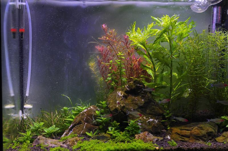 Вобщем сегодня перед подменой почистил все от водорослей, восновном в тех местах где куба. Подстриг вместе с кубой, т.к. вычистить не задев ее нерельно. В блоге Божкова была описана методика с применением бактер 100 и пентак W, последний для насыщения кислородом грунта. Т.к. купить эти препараты нет желания из-за цены, я взял Сихем стабилити и кислородные таблетки для транспортировки рыбы. Таблетки растворяются медленно выделяя кислород. Их позасовывал в крунт пинцетом, и со шприца повводил в грунт сихем стабилити. Посмотрим что из этого выйдет. Свет 6 часов, СО2 на 1пузырь в сек. Ну и естественно аэрирация после выключения света.