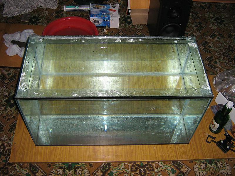 себе клеил много аквариумов, больших три, во всех стяжек конечно больше чем нужно, но, у меня 9-й этаж.. сами понимаете